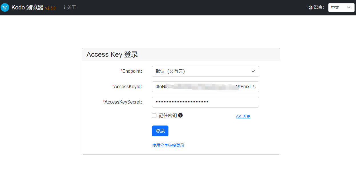填写 七牛云的AccessKey和SecretKey